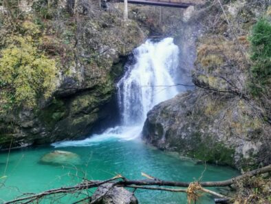 Vintgar gorge, waterfall Šum & St. Katherine Church
